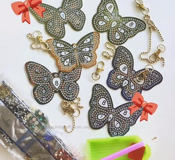Прикрашаємо брелоки-метелики алмазними камінцями та даруємо друзям🎁.У комплекті 6 метеликів з двосторонньою клеєвою основою, нанесеним трафаретом з номерами, камінці, інструменти для роботи, ланцюжки.