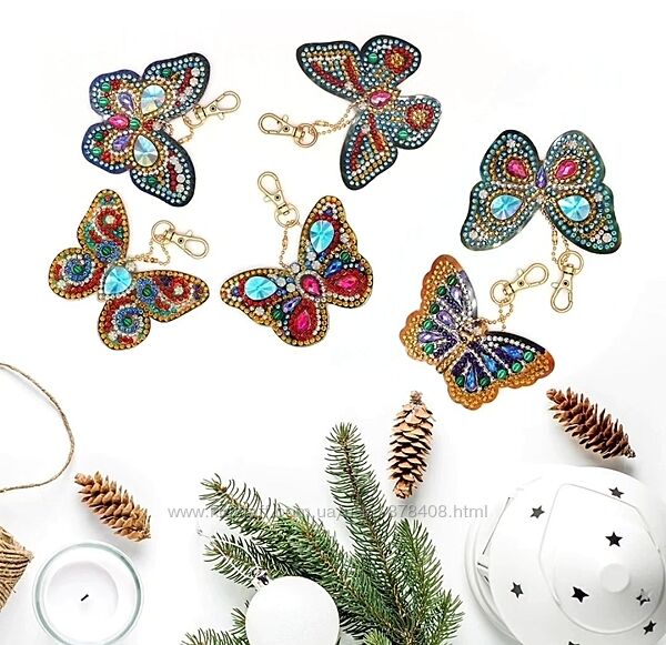 Подробное описание: Алмазна мозаїка Акрилові Брелоки іграшки на ялинку Метелики 6 шт