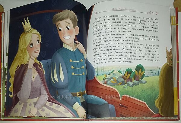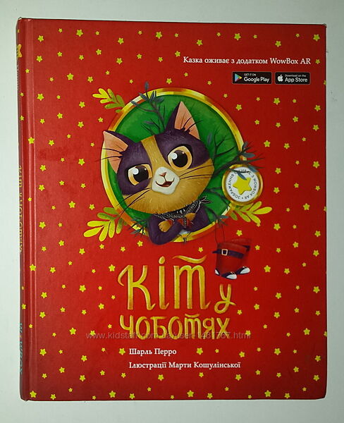 Дитячі книга з доповненою реальністю відомого казкаря Шарля Перро «Кіт у чоботях» — знаменита казка про дотепного кота, який допомагає своєму хазяїнові знайти щастя і здійснити найзаповітніші мрії. Лукавий кіт, що дістався синові мірошника у спадщину, виявився не простою тваринкою, а добрим помічником і справжнім другом. Усім відомо, як своїми хитрими витівками і спритністю кіт у чоботях познайомив скромного хазяїна з королем і прекрасною принцесою, перетворив бідного юнака на маркіза і влаштував його щастя. Казка про кота у чоботях учить цінувати друзів і допомагати їм у будь-якій біді, не боятися труднощів і складних ситуацій, ніколи не зневірятися і сміливо долати усі перешкоди. За допомогою терпіння, винахідливості, спритності та сміливості можна досягти будь-яких цілей. Казковий чарівний кіт хитрий і виверткий, але він також добрий, вірний друг і помічник, який не кидає хазяїна у біді, а допомагає йому добитися визнання та успіху. Казки не лише несуть у собі мораль і повчання, але і допомагають розвивати мову, образне мислення, пам´ять дитини. Після спільного прочитання казки поставте питання малюку й запропонуйте придумати свої варіанти розвитку сюжету: