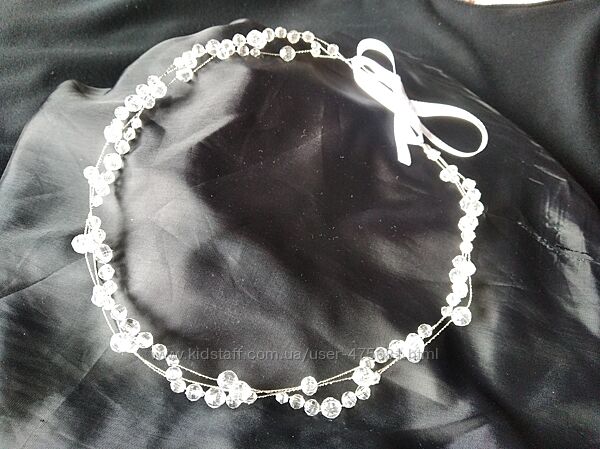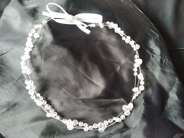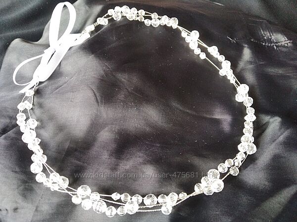 Вінок для весільної зачіски виконаний з прозорих намистин різних форм і розмірів.Виконано на ювелірної дроті сріблястого кольору.