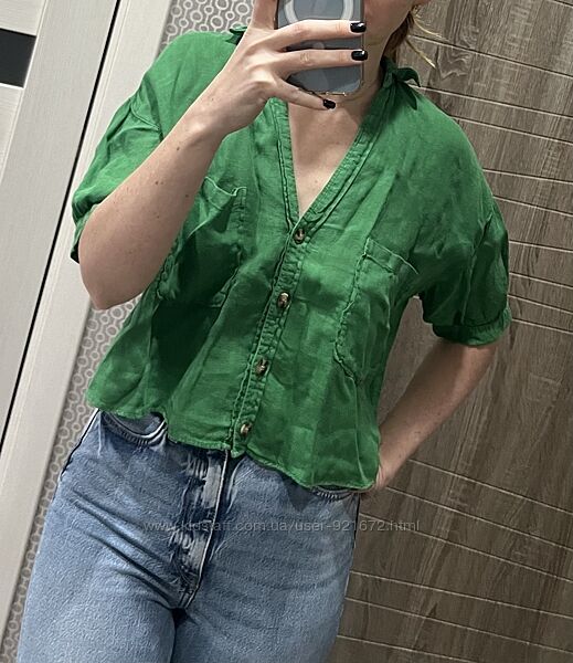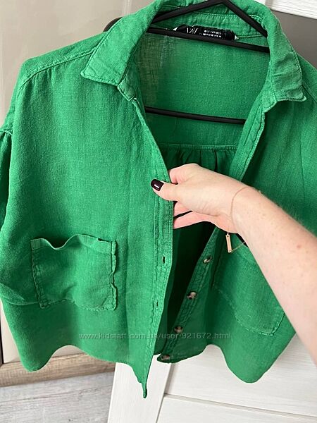 Рубашка Zara з льону. Зелений колір. В ідеальному стані. Носілася дуже мало. Застібається на пуговиці. З карманами. Льон 100%Другие объявления продавца