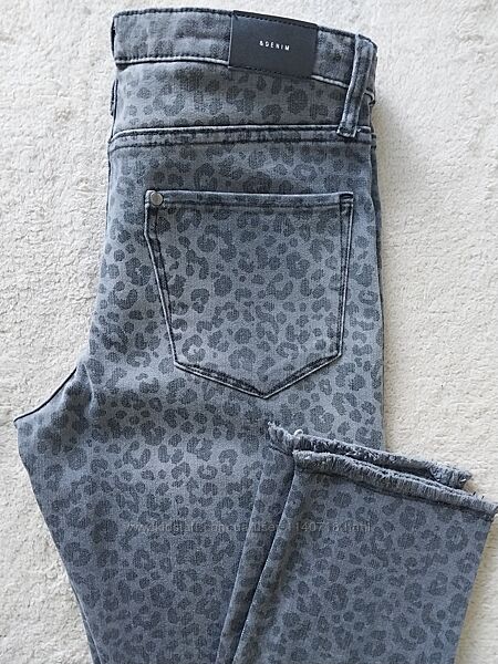 Нові джинси, без бірки. Колір- сірий леопард. Довжина по зовнішньому шву - 99 см, по внутр.шву - 77 см; ПОТ 36 см, ПОБ 44 см, ширина знизу 14 см, посадка спереду - 24 см, ззаду - 28 см. Склад: 53% бавовна, 45% поліестер, 2% спандекс.