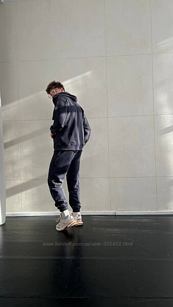 Чоловічий спортивний костюмМи створили теплий і практичний костюм помірного оверсайз фасону. Худі на блискавці із глибоким подвійним капюшоном на шнурівці, який тримає форму. Джогери на еластичному паску із зав‘язками, завужені донизу.