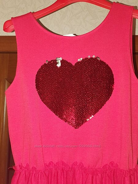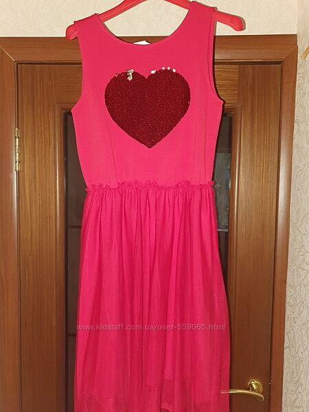 Продам красивое красное платье с паедками из сердца (двухсторонние) от H&M в идеальном состоянии - одето до 5 раз.Размер 12-14 лет.
