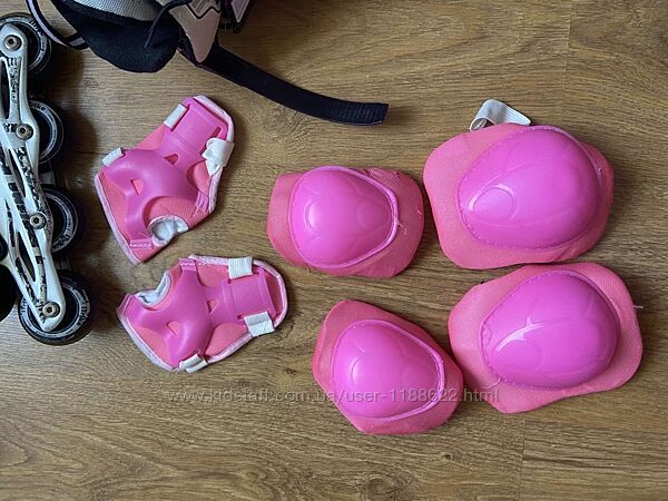 Дитячий комплект захисту від 4х до 10 років наколінники, налокітники, захист зап´ястків, рожевий колір.Характеристики набору захисту:
