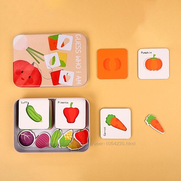 Продам развивающую игру-пазл "Угадай, кто я": овощи. Увлекательная игра-пазл для малышей, из 8 заданий на тему: овощи. Нужно сложить карточки таким образом, чтобы воспроизвести нужную фигурку.Для решения задачи нужно правильно скомбинировать карточку с цветом и карточку с формой. Правильно выполнить задание поможет внимание, логика и терпение. Малыш с удовольствием будет искать пару по цвету и форме, которые наложив друг на друга, логическим образом покажут фигурку-задание. Также игру можно использовать как пазл, вставляя фигурки с заданием в карточки с окошками для них. С помощью этой игры можно развить логическое мышление и познавательные способности, концентрацию внимания, тренировку памяти, фантазию и мелкую моторику рук. В комплект входят: 8 фигурок с заданием, 8 карточек с фоном, 8 карточек с прорезанной формой. Карточки толстые,довольно большие, подписаны на английском языке. Карточки можно по-разному комбинировать между собой: накладывать трафарет на цветную карточку, чтобы получилась картинка, вставлять фигурную карточку в трафаретную выемку, объединять в группу,использовать трафарет для рисования. Для удобства и компактного хранения, набор находится в металлической коробочке. Цена наборчика: 200 грн.Наборчик новый, запакованный, яркий, качественный, интересный.