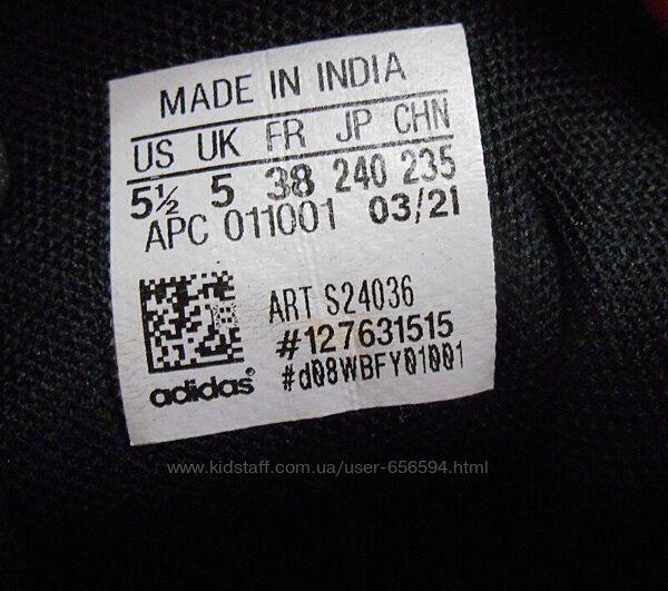 Adidas, р.38 ст.24,5 см оригинал кроссовки кожа Индия