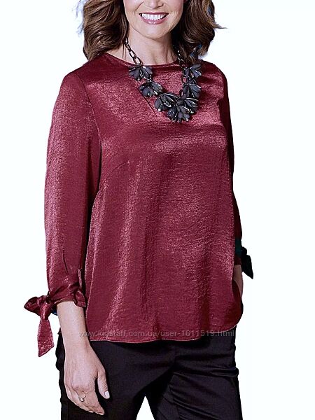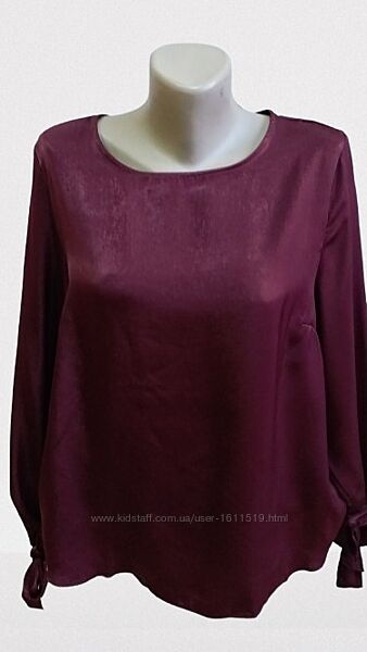 Блуза від англійського бренду Anthology. По спинці застібається на гудзик. На рукавах стрічки. Тканина м´яка, трохи лощена, з шовковистим блиском, не тягнеться.(2987)