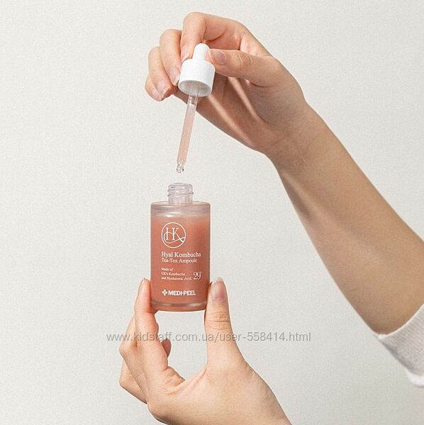 Сироватка з комбучею Medi-Peel Hyal Kombucha Tea-Tox Ampoule «оживляє» втомлену та зневоднену шкіру, наповнює її здоровим сяйвом. Зміцнює шкіру, робить її щільнішою та пружнішою, заспокоює подразнення. Сироватка забезпечує потужний антиоксидантний захист, нейтралізує агресивний вплив довкілля та перешкоджає руйнуванню клітин. Знімає почервоніння й запалення, покращує тон обличчя й насичує шкіру вологою. Підтримує оптимальний гідроліпідний баланс шкіри, перешкоджає втраті вологи.Комбуча, що становить 70% сироватки, вироблена всесвітньо відомою англійською компанією Ahmad Tea з високоякісного чорного чаю, що пройшов ферментацію за температури 29° упродовж 336 годин. Поєднання потужних компонентів, як-от комбуча, 8 видів гіалуронової кислоти та 5 різновидів керамідів, що входять до ліпосоми, дає змогу сироваткі проникати глибоко в епідерміс, не травмуючи роговий шар. Ніжна текстура залишає комфортний зволожувальний фініш, без липкості.