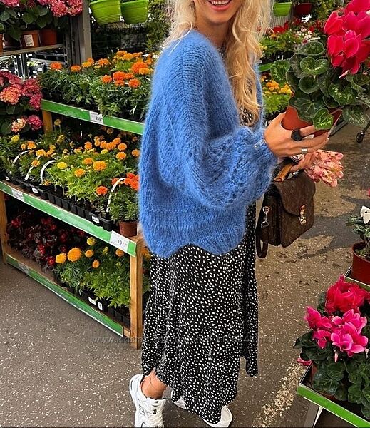 Подробное описание: теплий мохеровий Кардиган з ажурними рукавами насичено блакитний