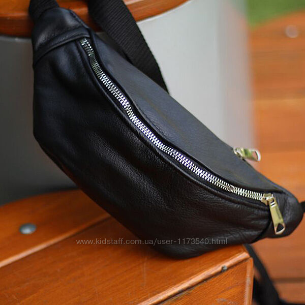 Шкіряна бананка сумка чорного кольору – стильний та функціональний аксесуар.