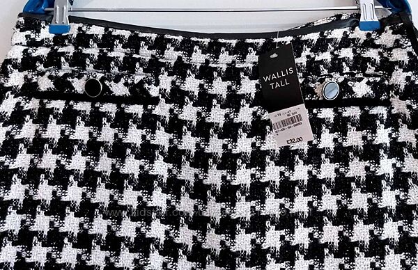 Юбка от английского бренда Wallis. По спинке застегивается на молнию и пуговицу. По переду карманы. Есть подкладка. Ткань плотная, фактурная, не тянется.(6545)