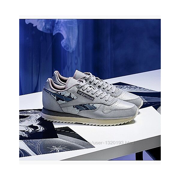 Верх Classic Leather Ripple повністю присвячений синьому кольору. Основа верху виконана зі шкіри, а накладки трохи м´якші. Майже весь верх покритий синьо-сірим кольором. З боків проходить прозора синя смуга.