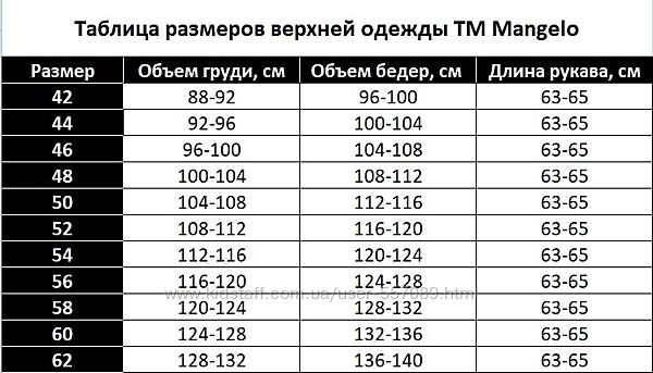 56 - длина 101 рукав 65 плечи 47 пог 64 поб 69