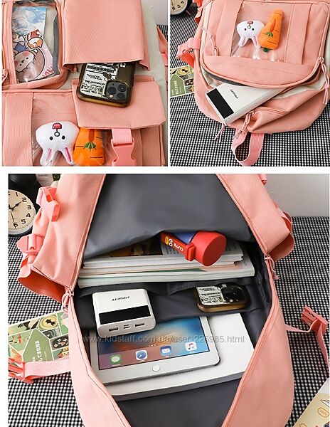 Cтільний сучасний підлітковий шкільний набір у корейському стилі з прозорими кишенями - дівчата будуть у захваті, а значить навчання буде в задоволення!В комплекті: рюкзак, сумка - шопер, косметичка, пенал та мішечок для дівчинки середньої та старшої школи – функ ціональний, місткий, яскравий набір в корейському стилі.