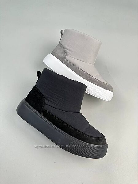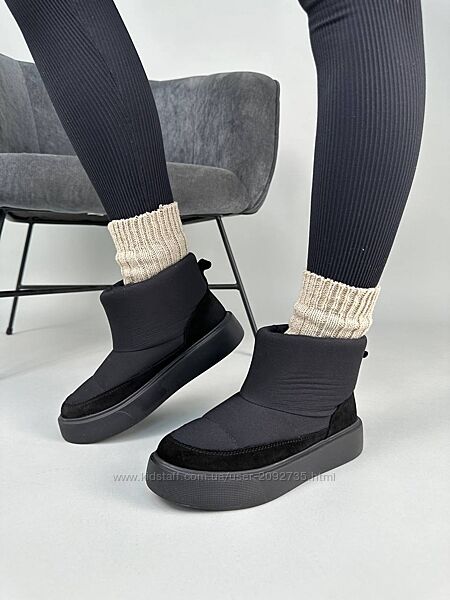 Подробное описание: Уггі жіночі з плащової тканини чорні та сірі зі вставками замші Арт 6208