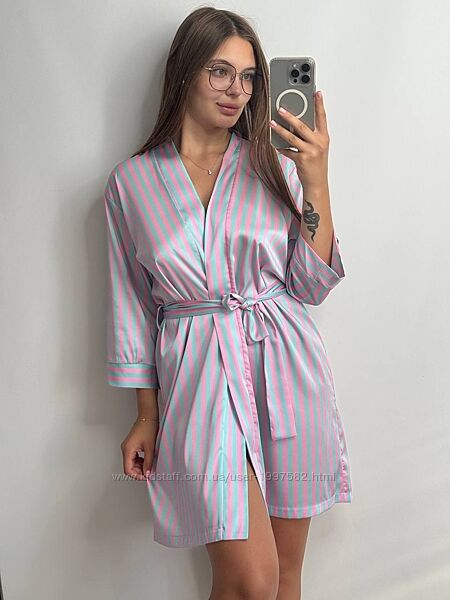 Інший одяг нашого магазину для дому та сну, Ви можете подивитися за цим посиланням: https://www.kidstaff.com.ua/user-anno-1997582/sect...Трендовий сатиновий халатик для себе коханої. Відчувати себе королевою легко разом з нашими ніжним халатиком у яскравий смугастий принт. Халат має комфортну довжину та поясок для фіксації