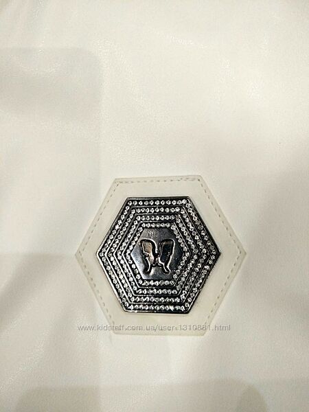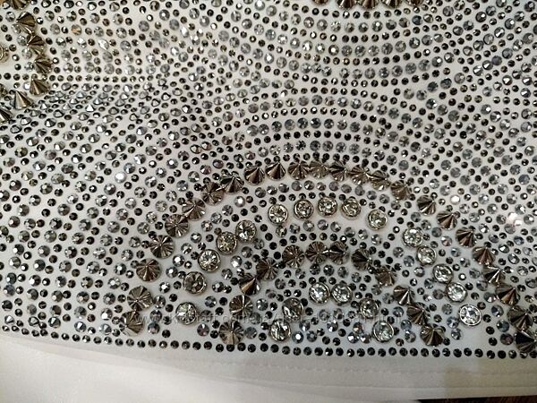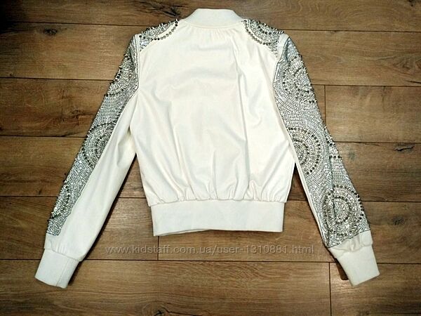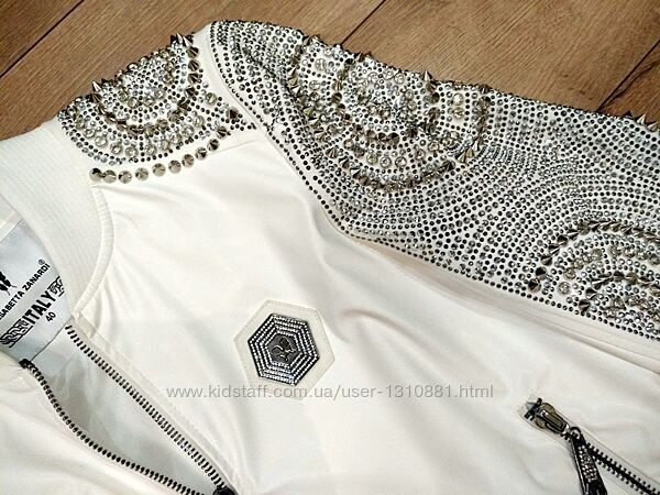 Шикарня белая куртка/бомбер, украшенная стразами, камнями, заклепкамибренда Elizabetta Zanardi. Эко кожа белого цвета, размер М-L