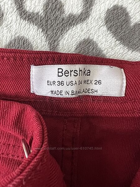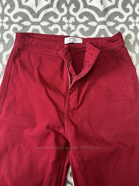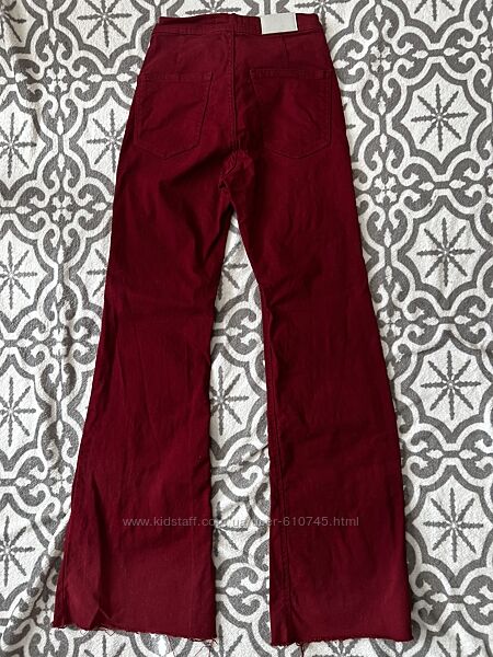 Стан ідеальний. Колір глибокий вишневий. Розмір 36 буде впритик, краще 34. Посадка висока, буткат.пояс - 32 см, бедра - 42см, довжина - 105 см