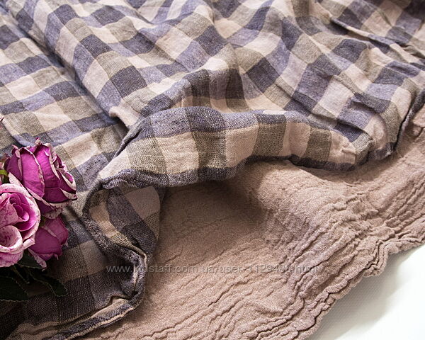 Оригинальная дизайнерская льняная туника Yes Ours. Ну очень необычная, свободного кроя, двухслойная, выполнена из натурального фактурного массивного жатого льна, основной цвет экрю, клетка дополнена фиалковым и горчичным. Идеальна для создания многослойных образов, отлично сочетается с крупной бижутерией и всевозможными аксессуарами. Носить можно как на короткий, так и на длинный рукав.