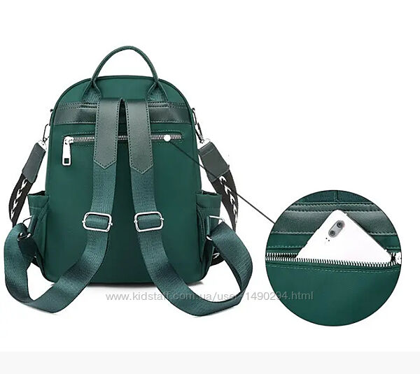 Подробное описание: Рюкзак женский зеленый из нейлоновой ткани