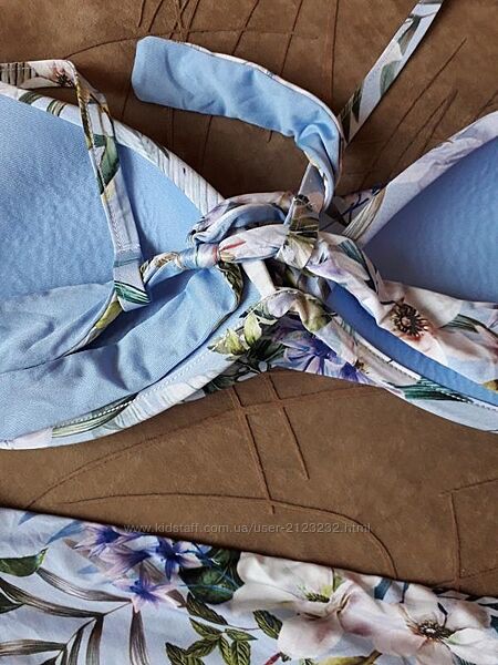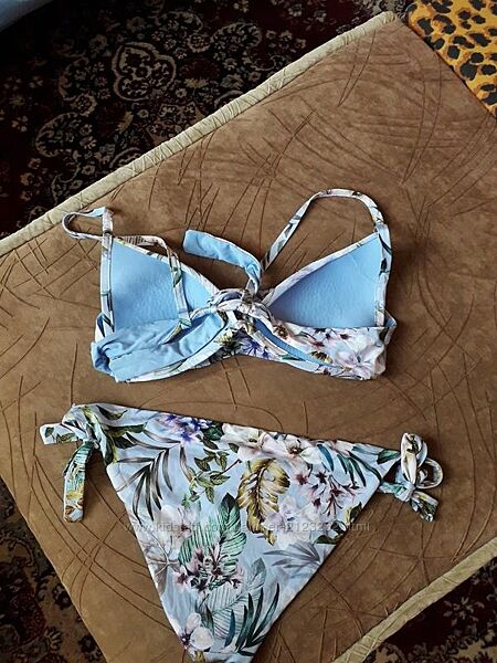 Calzedonia Оригінал! Італія. S-M, чашка A-B. стильна модель 2023р. небесний колір з тропічним принтом. Чашка на паролоні. Плавочки на завязках. розмір S-M. стан ідеальнийДругие объявления продавца