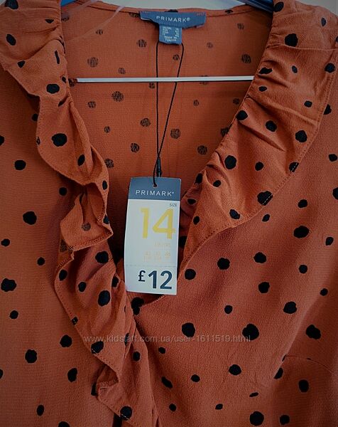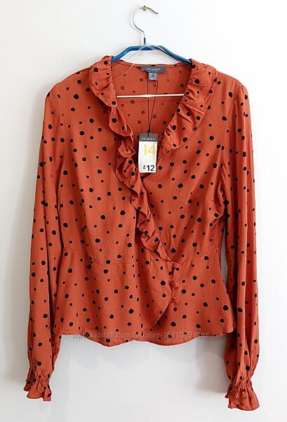 Блуза від англійського бренду Primark. Модель на запах. По переду застібається на три зовнішні гудзики і один внутрішній. Манжети на резинках. Тканина м´яка, фактурна, не тягнеться.(6425)