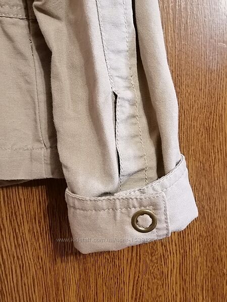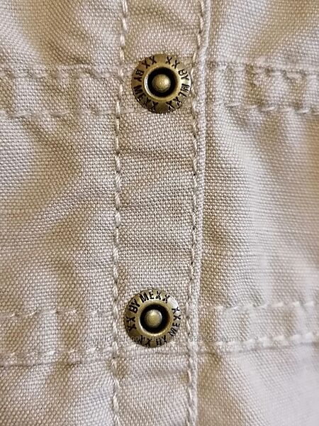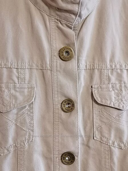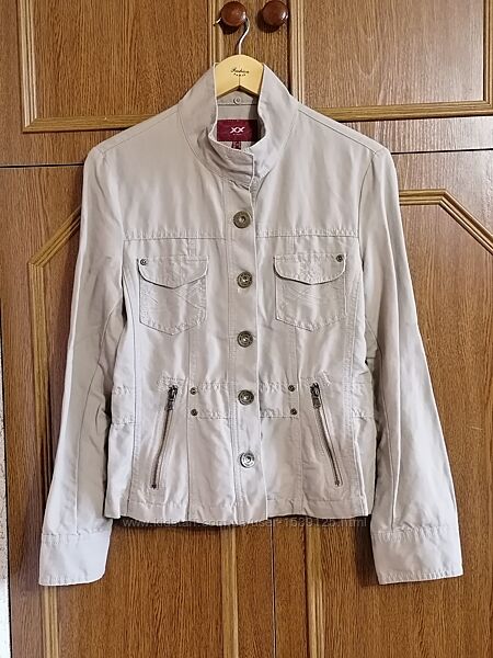 Лёгкая женская курточка на весну-лето-осень от испанского бренда Mexx, не секонд, своя, состояние новой вещи, единственный нюанс - была утеряна верхняя пуговица, заменена на другую (смотрите на последнем фото), силуэт приталенный, без подкладки, застёжка на пуговицы, воротник и рукава на кнопки, подойдёт на украинский размер 46.
