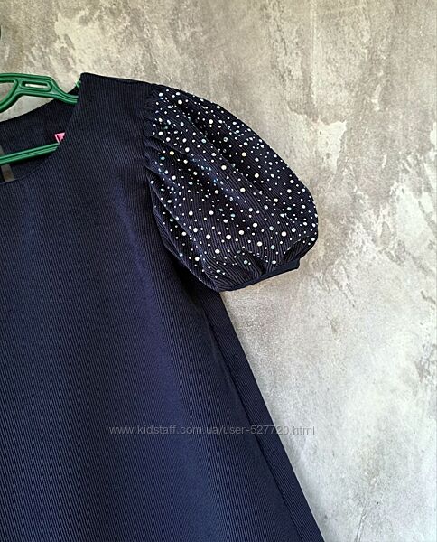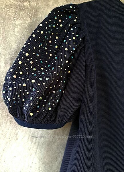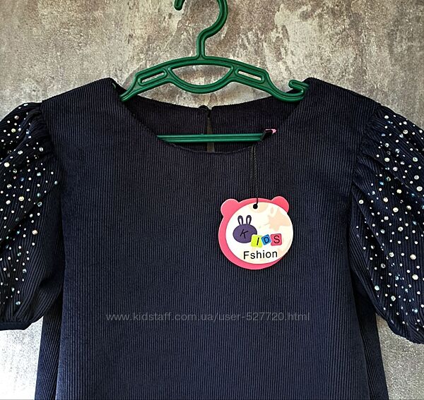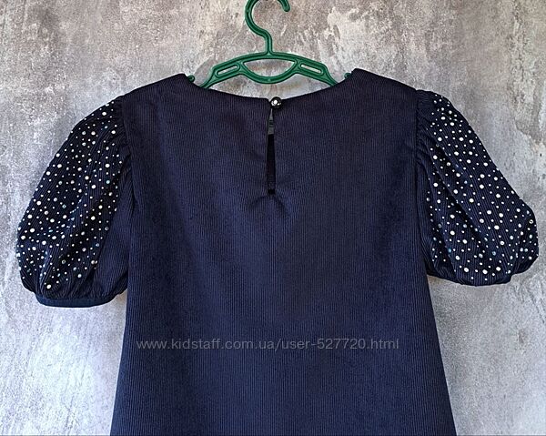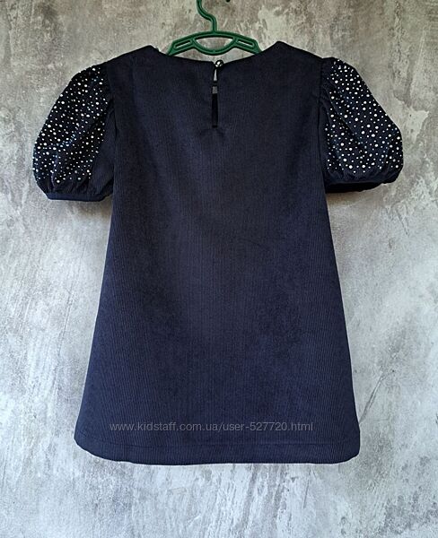 Красивое платье для девочки. Модель свободного кроя, рукав- фонарик, декорирован разноцветными стразами. Сзади застегивается на пуговицу.Материал: микровельвет