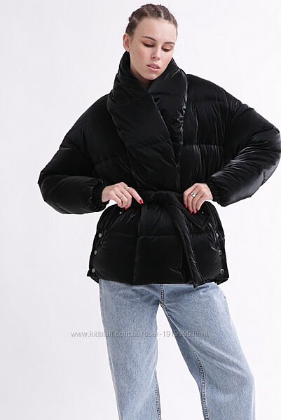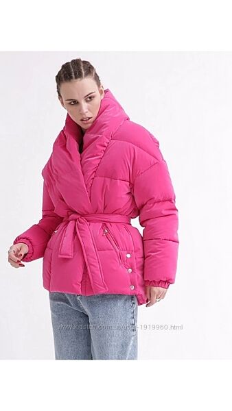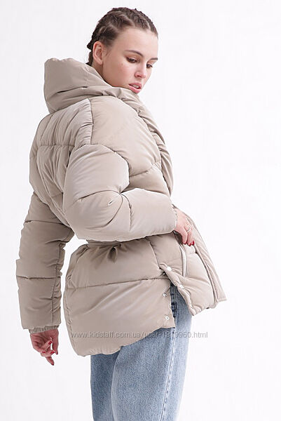 Жіноча зимова куртка. Виконана з плащової тканини Velutto з оксамитовим напиленням, тканина м´яка викликає приємні тактильні відчуття. Деталі: Об´ємний шалевий комір, що надійно захищає від вітру, довгий рукав з тонкою еластичною манжетою, бокові розрізи, регульовані кнопкою-застібкою. Спереду дві зручні кишені на блискавці. Застібка на блискавку та планку на кнопках.*Пояс у комплектіПідкладка: Плащова тканина Lacue