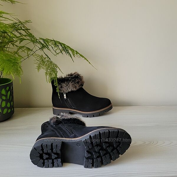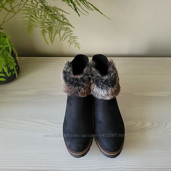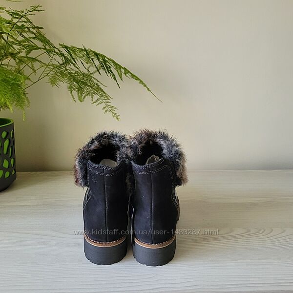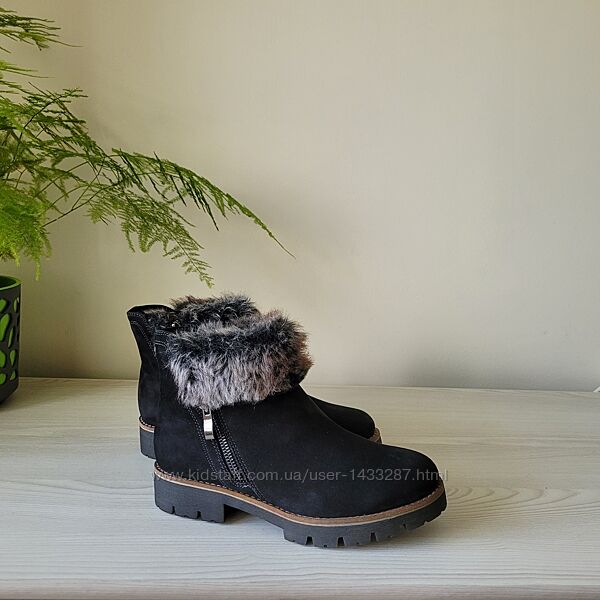 Верх - нубук та манжети із штучного хутра(не розкочуються). Фіксуються на замочок (замочок із зовнішнього боку - для декору). Серединка та устілка утеплені штучним хутром. Якісна,неслизька,тракторна підошва.