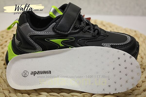 Стильні зручні кросівки від фірми Apawwa (Румунія), не тяжкі. На шнурівці+липучка. Світловідбиваючі вставки для темної пори доби.