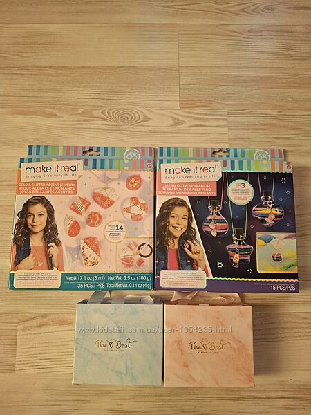 3. Набор Make it Real: создание кулонов "Сказочные сновидения". Что может быть лучше кулона, созданного собственными руками? Данный набор содержит невероятно красочную и яркую пыльцу, которой необходимо наполнять стеклянную колбу. Комплектация: вощеный хлопчатобумажный шнур - 3 цвета по 3 метра; пластмасовая бутылочка - 3 шт., мини воронка, черный песок (20 гр.), песок, светящийся в темноте - 4 цвета, подвески - 3 шт., пошаговая инструкция с иллюстрациями, удобный органайзер. С помощью маленькой лейки, можно смело миксовать, комбинировать разные цвета и наполнять колбу. Получается необычный аксессуар. созданный своими руками. Возрастная категория 8+. Цена: 300 грн.