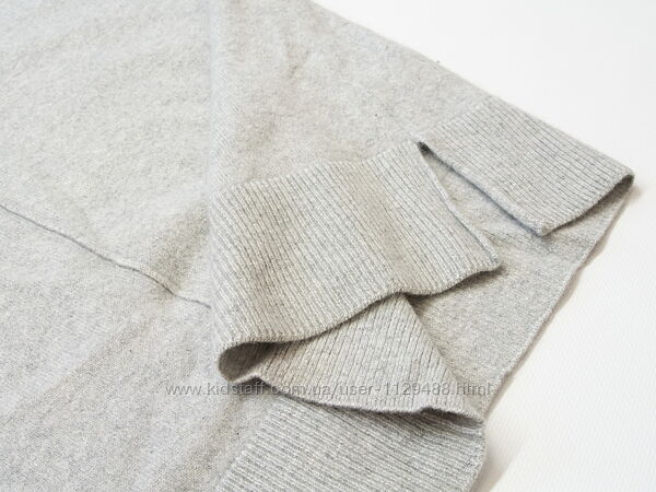 Очень качественный, мягчайший, гладкой плотной вязки, достаточно эластичный, актуальной модели, свободного кроя, линия плеча спущена, внизу по бокам небольшие разрезы. Цвет нейтральный благородный серый в сочетании с более темным. В гардероб вписывается легко, сочетается с любым низом.