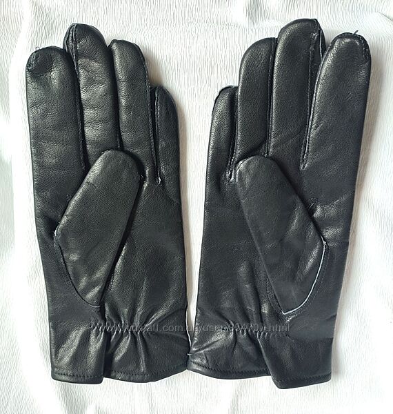 Перчатки мужские кожаные демисезонные черные (размер L, 9½)Изготовлены из качественной натуральной кожи черного цвета. Подкладка трикотажная. Размер L, 9½. Длина перчаток 27,5 см. Ширина у основания пальцев 11,2см, в самой широкой части ладони у основания большого пальца 12,5 см. Длина пальцев (в см): указательного 10,5, среднего 10,7, безымянного 11, мизинца 8,5, большого 9.