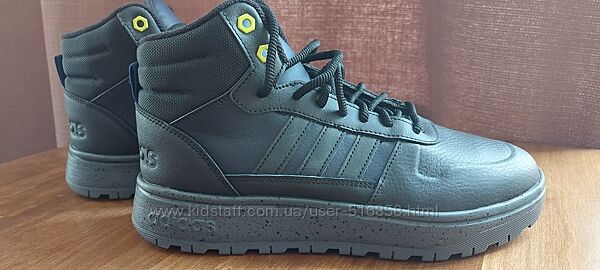 Adidas черевики,р. 41. Куплені в фірмовому магазині. Модель минулого сезону. купили на подарунок племіннику,але не підійшов розмір, впритик. були. Так і пролежали. Модель минулого сезону.Бірки зняли. По фото вино - нові. Утеплені. Йдуть як демі. На холодну зиму не підійдуть.Але племінник збирався взувати взимку. Підошва товста. Колір чорний з темно синими вставками.Довжина устілки 25,5 см.
