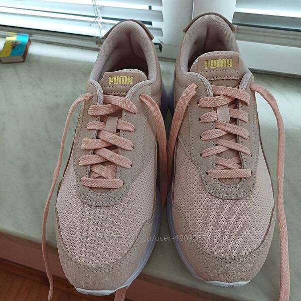 Новые женские кроссовки Puma Cruise Rider Tonal пудрового цвета, размер на язычке евро 38,5 длина 24,5см, большемерят, подойдут на широкую ногу, фактическая длина стельки 25,5cм (на фото) . С коробкой. 1700 гривен. Верх изготовлен сочетания сетки, натуральной и синтетической кожи в стиле ретро Классическая система шнуровки - для плотной посадки. Брендинг PUMA на язычках, печатный логотип сбоку и на задниках, а также культовая полоса Formstrip по бокам. Вставки из TPU в области пяток обеспечивают поддержку. Промежуточная подошва IMEVA двойной толщины гарантирует комфорт каждого шага, а крепкий протектор из резины хорошо держится на любой поверхности.