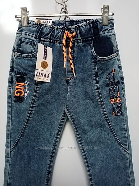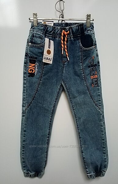 Нові, дитячі джинси - джогери . Виробник т.м. Likas. Зріст 92 см. - 152 см. У поясі та з низу штанин є не жорстка, гарної якості резинка.Розміри в наявності: