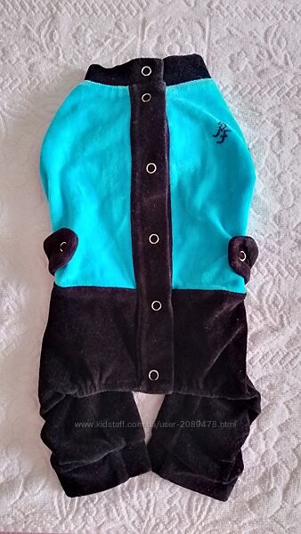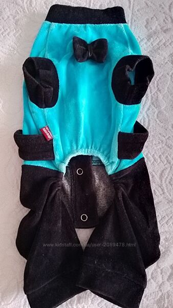 Костюм, велюровый, голубой с черным, бабочка на груди, размеры: длина от шеи до низа (по грудке) – 21 см, по спине – 30 см, ширина 19 см (1/2), б-у, в хорошем состоянии, цена 250 грн (торг)