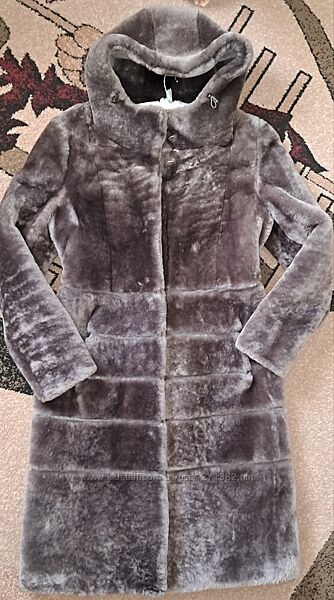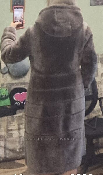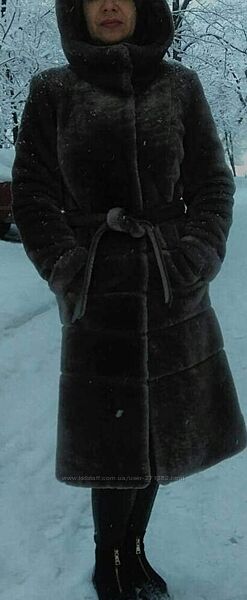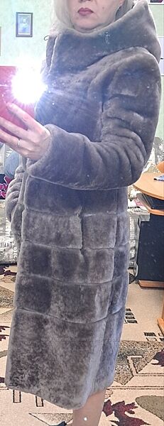 Подробное описание: Довга шуба з мутона з капюшоном. Розмір 44-46.