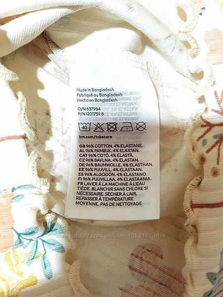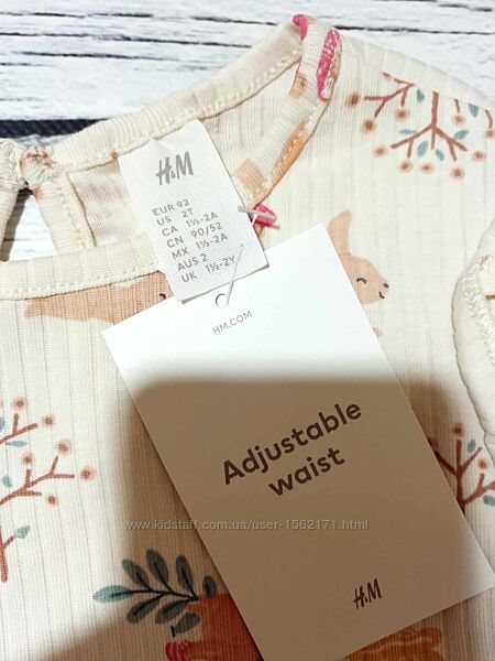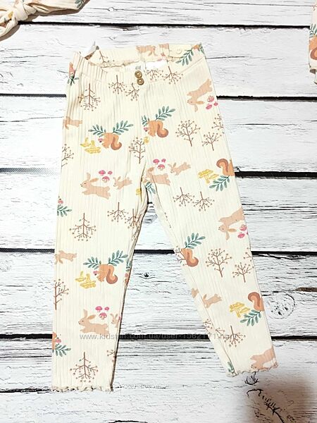 У наявності надзвичайно м*який і приємний на дотик комплект від бренду H&M, що відрізняється своєю якістю та чарівними принтами.Склад: 96% котон, 4% еластан. Розмір на 1.5-2 роки. Кофта ззаду на гудзику,