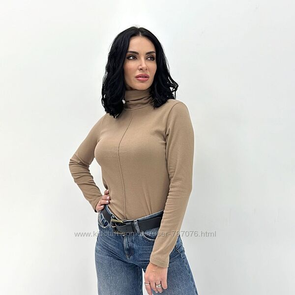 Жіноча тепла базова водолазка має приталений крій, довгі рукави та високу горловину. Спереду виріб прикрашений декоративним рядком по всій довжині.