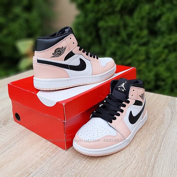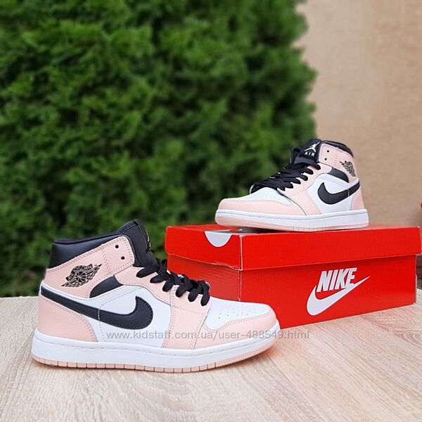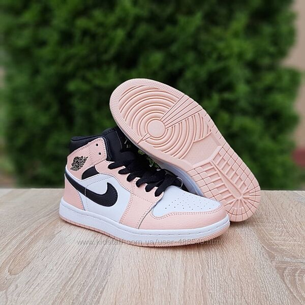 Подробное описание: Кросівки жіночі Nike Air Jordan 1 високі білі з пудрою