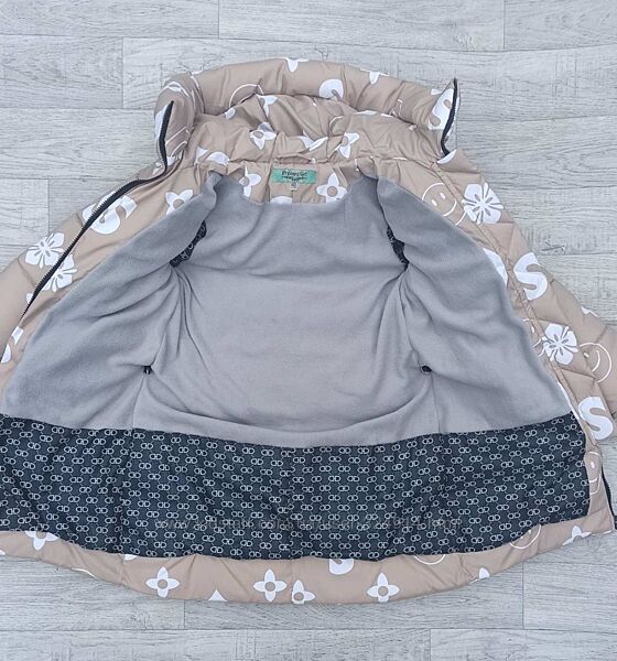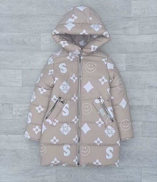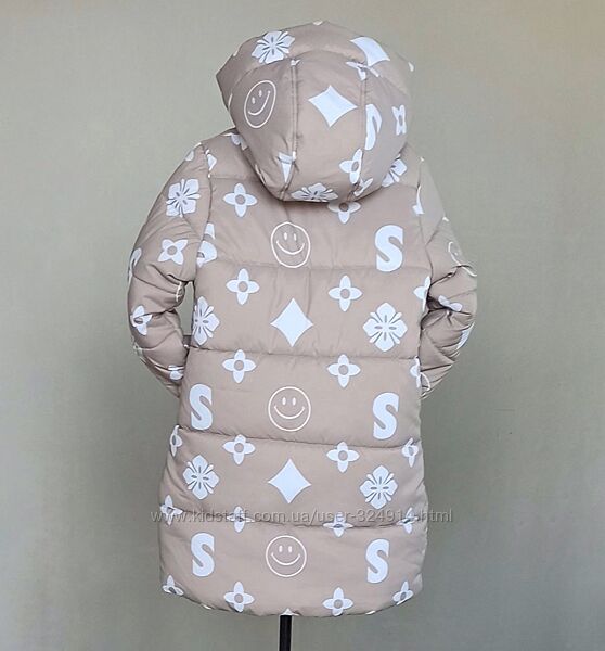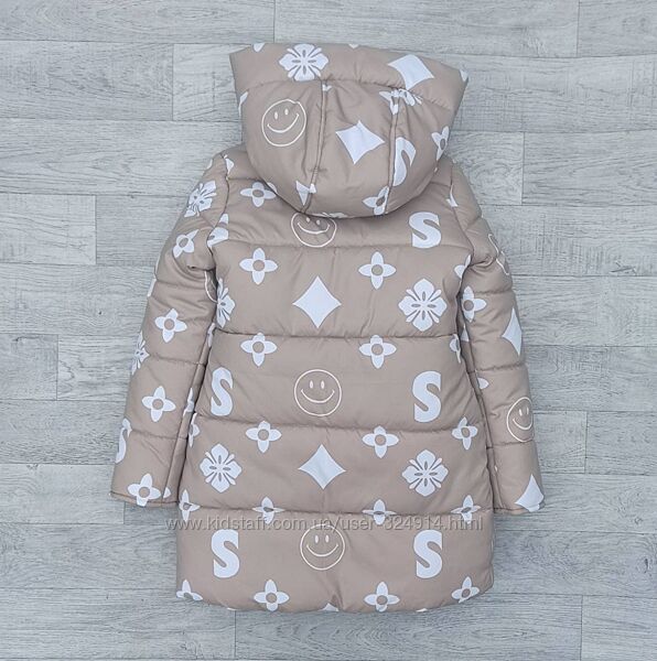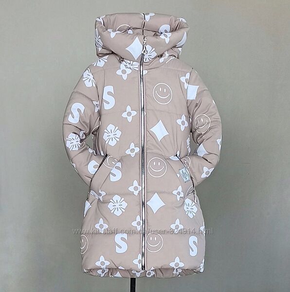 Зимняя удлиненная куртка – пальто из принтованной плащевки высокого качестваЦвет – бежевый