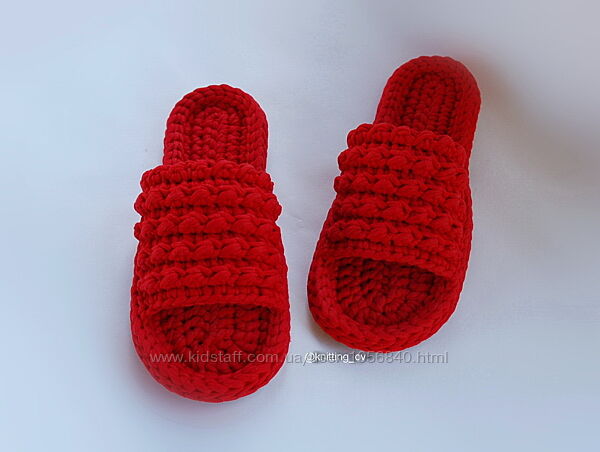 Тапочкі виготовлені з хлопкової трикотажної пряжі, подошва укріплена мікропористою гумою 5,5мм. Тапочки можна прати при температурі не більше 30 градусів на делікатному режимі, не замочувати, сушити в добре провітрюваному приміщенні. В наявності нема, можливо виготовлення під Ваш розмір в інших кольорах. Можливо декорувати (окрема плата за декор). Товар індивідуального виготовлення поверненню не підлягає.