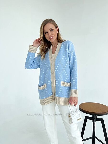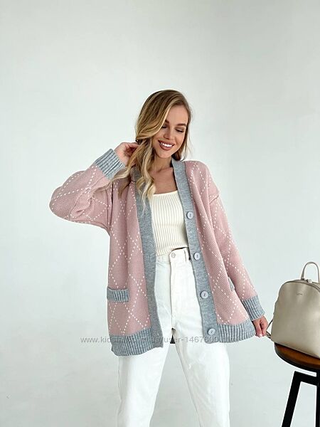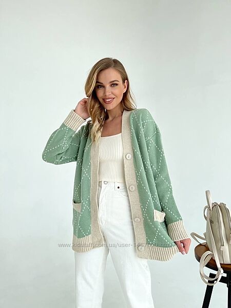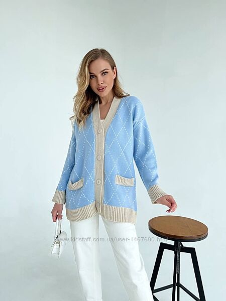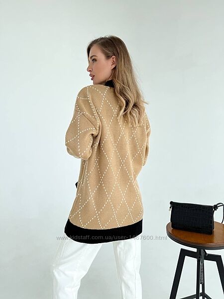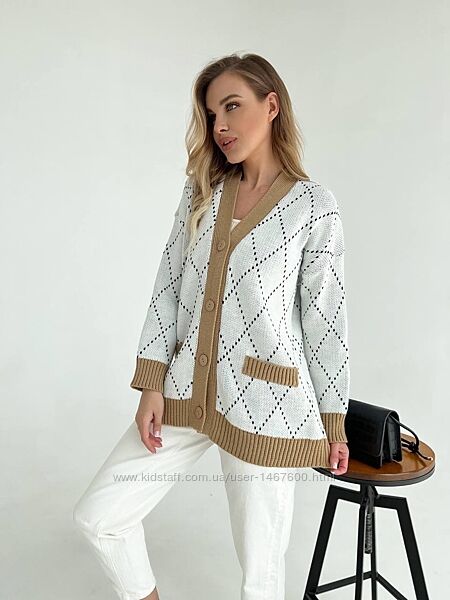 Стильний, але стриманий кардиган на ґудзиках жаккардової в’язки▪️Арт. KULYA