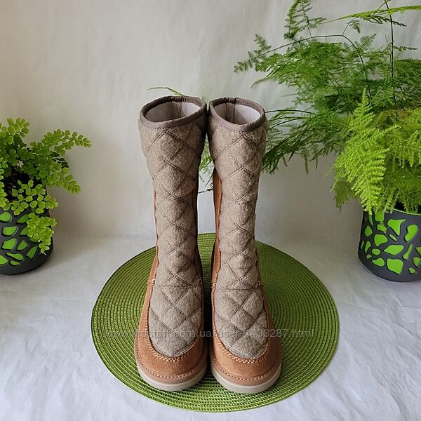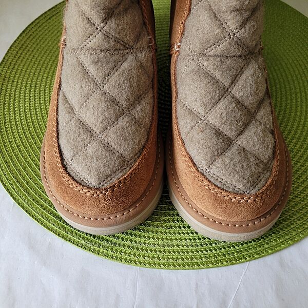 Верх замша (коричневий колір) та повстяна тканина (сірий колір). Мають мембрану WATERPROOF. Серединка та устілка флісові (серединка дуже м´яка та ніжна).