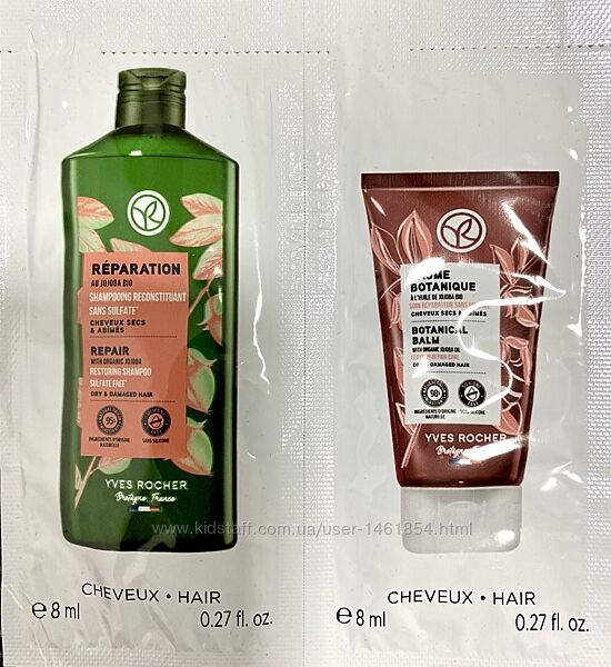 Зразок Відновлення волосся Yves Rocher- Шампунь Живлення та відновлення волосся з олією жожоба, 8 мл