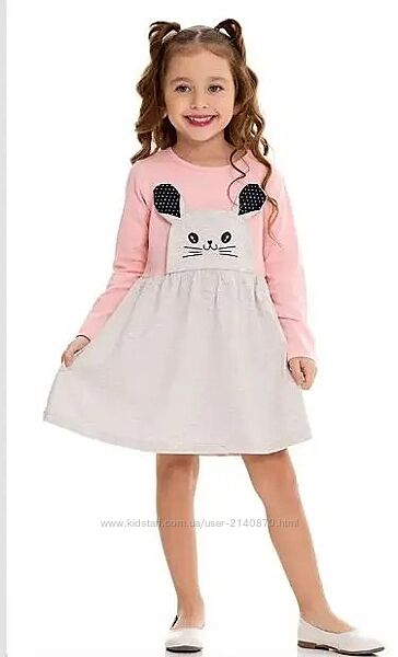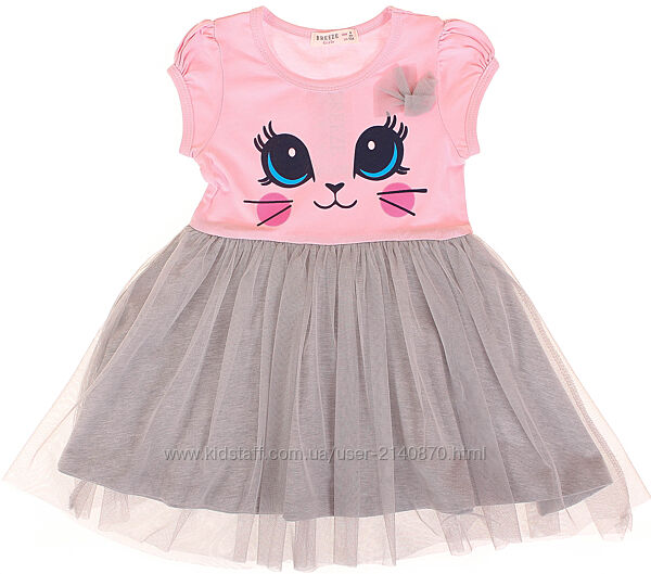 Код: 946088-10676, святкова сукня для дівчинки рожево-сіра з малюнком, Breeze Туреччина, зріст: 104 (3-4 роки), склад: 90 % бавовна, 10% лайкра