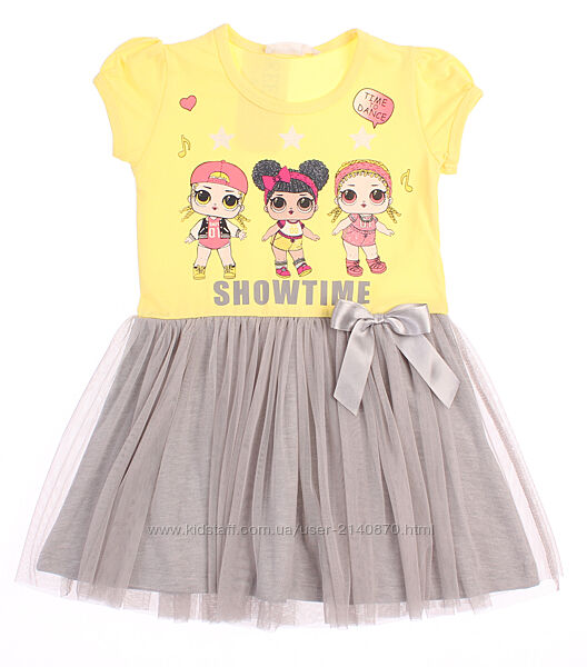 Код: 10857-13845, святково-повсякденна сукня для дівчинки жовто-сіра з малюнком, Breeze Туреччина, зріст: 116 (5-6), склад: 95% бавовна, 5% еластан